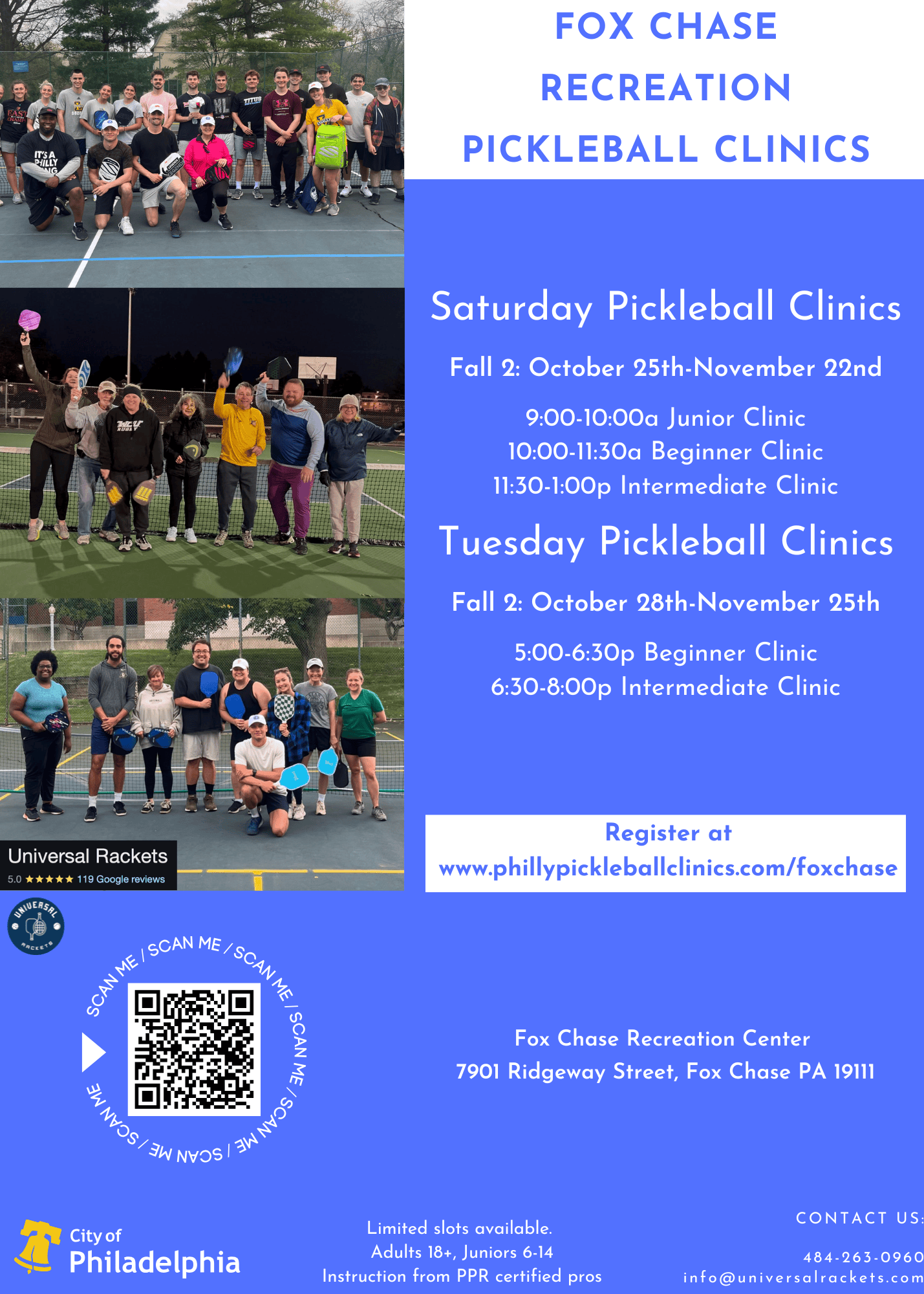 Fall 2: SATURDAY Adult Beginner Pickleball Clinic 10:00-11:30a (October 25th-November 22nd) Fox Chase