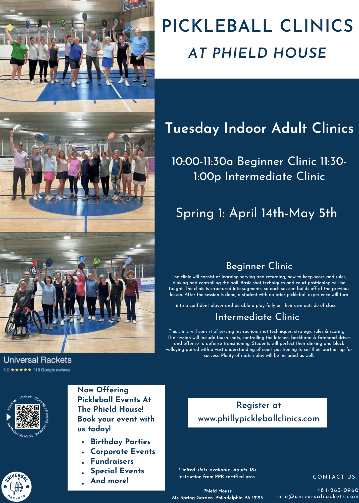 Spring 1: Beginner TUESDAY Pickleball Clinic Session: 10:00-11:30a (April 14th-May 5th)